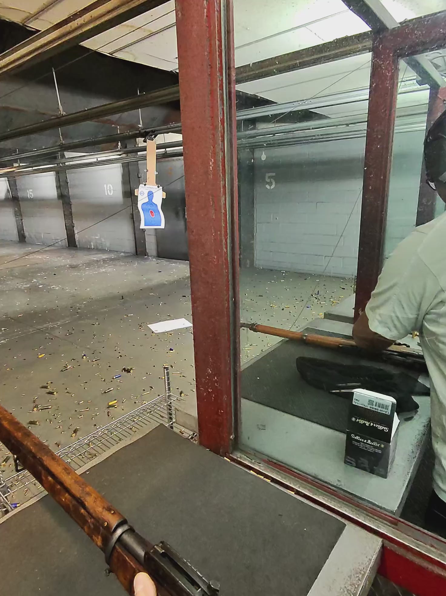 The rifle’s bolt is officially force-matched to the receiver (serial no. 138**), with older serials partially scrubbed — a clear sign of arsenal-level renumbering during refurbishment, not civilian alteration. The bore remains bright with strong rifling, and the metal surfaces show an even, honest patina. The stock retains its full-length wartime configuration with visible field wear but no structural damage. All major components — cleaning rod, sling swivels, and sights — are intact.