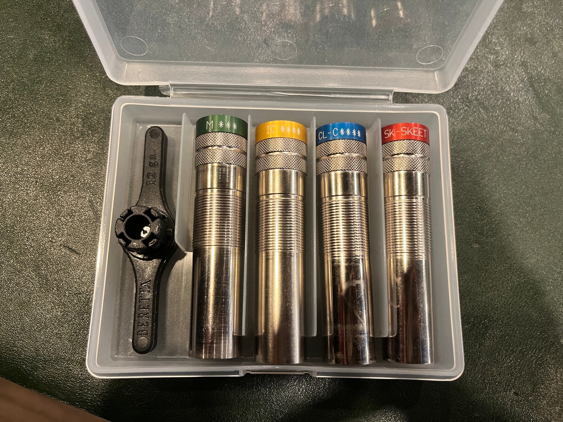 The shotgun comes as a complete factory package, including the original Beretta hard case, choke tube set, choke wrench, stock adjustment hardware, and factory accessories.