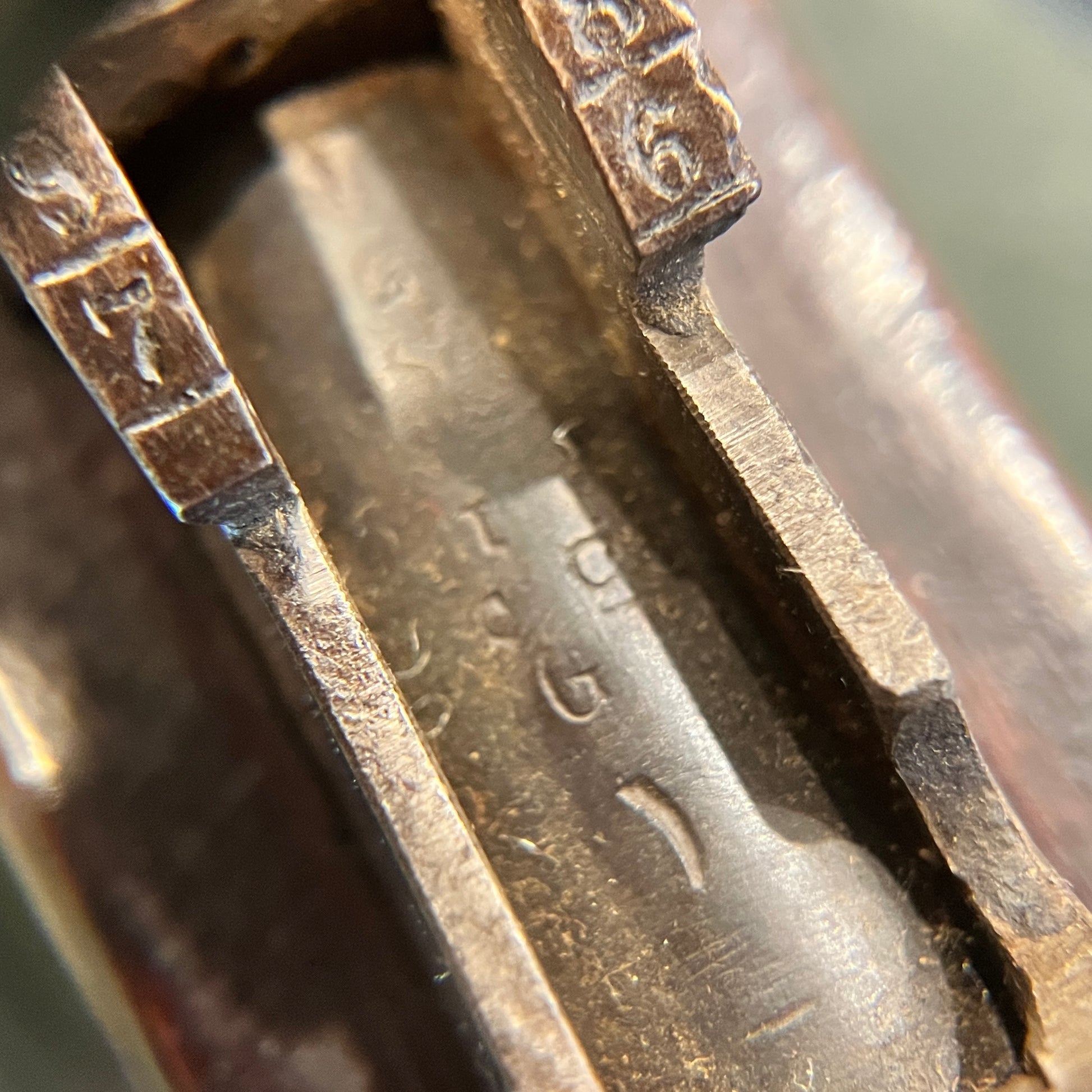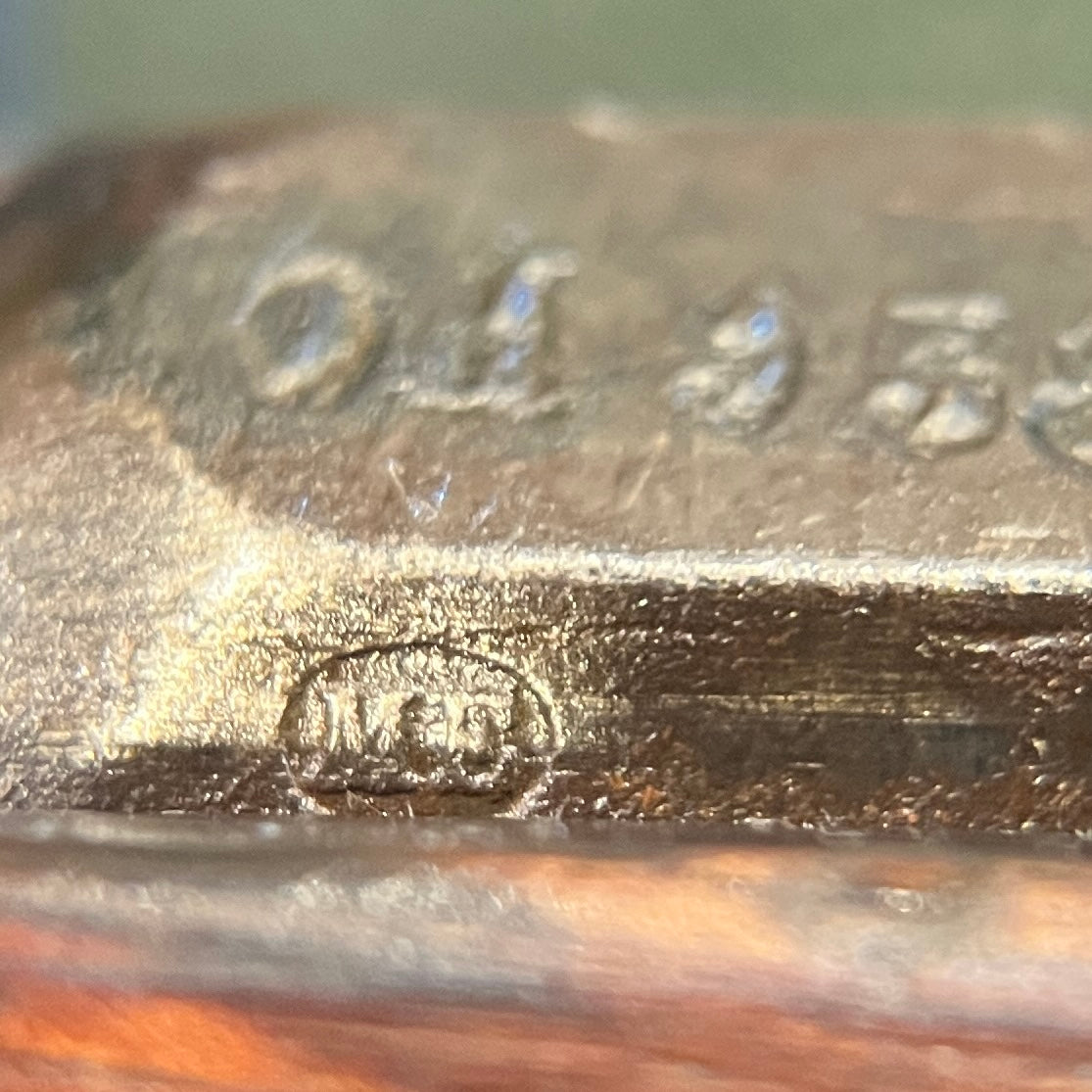 The metal components remain in original finish, showing honest wear and natural patina consistent with age. There is no indication of modern refinishing on the metal surfaces.