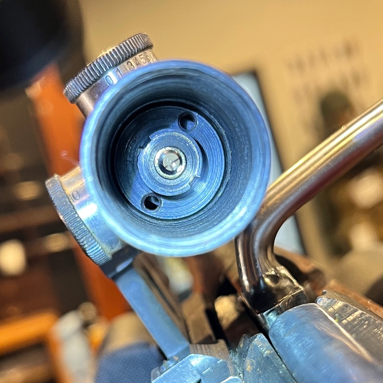 The included PU 3.5× scope (marked №Б-00098) is an original Soviet scope body consistent with wartime manufacture and postwar arsenal refurbishment in 1945. Optics are clear, reticle is sharp, and adjustments function correctly. The side scope mount base is a later reproduction