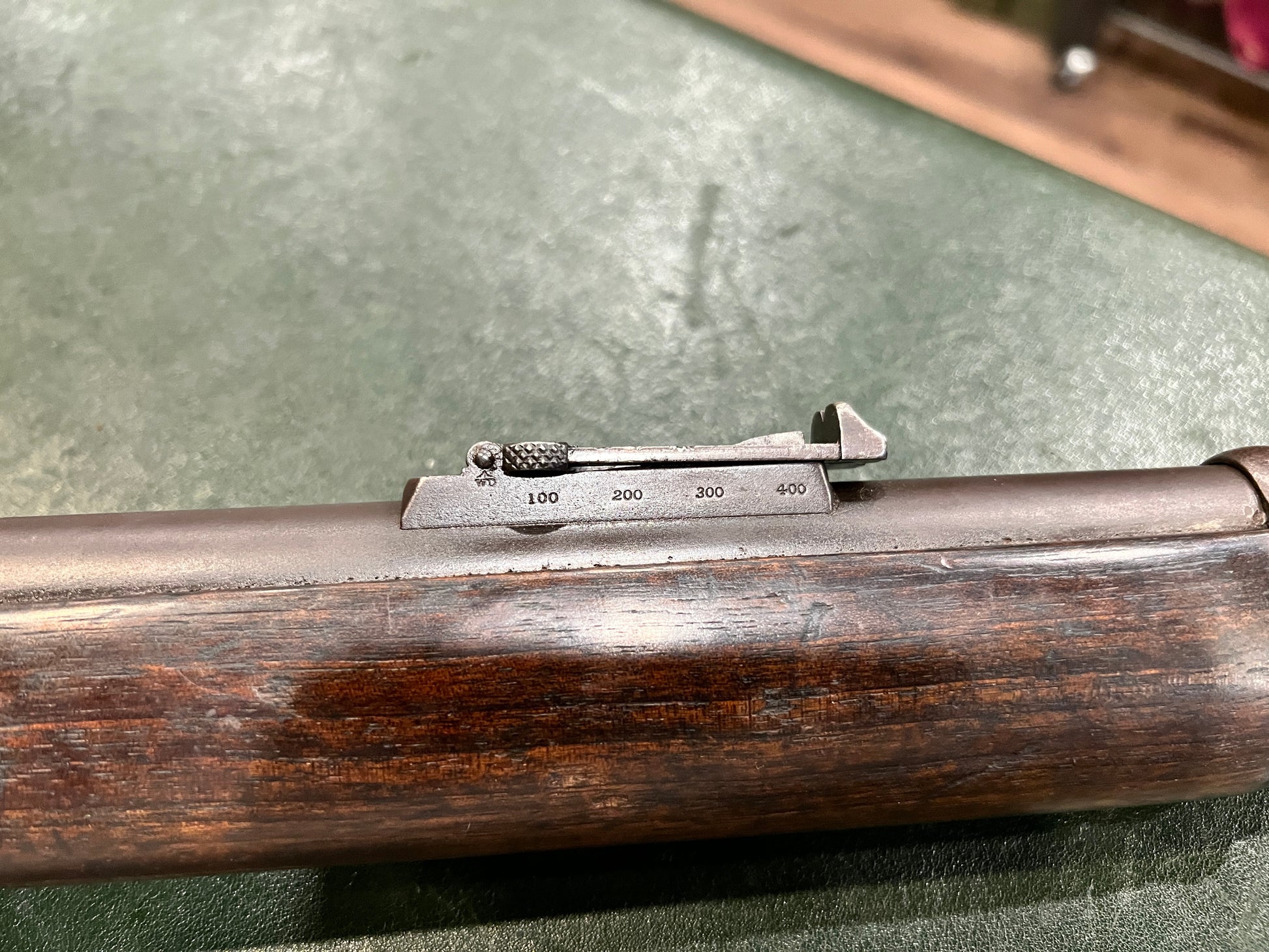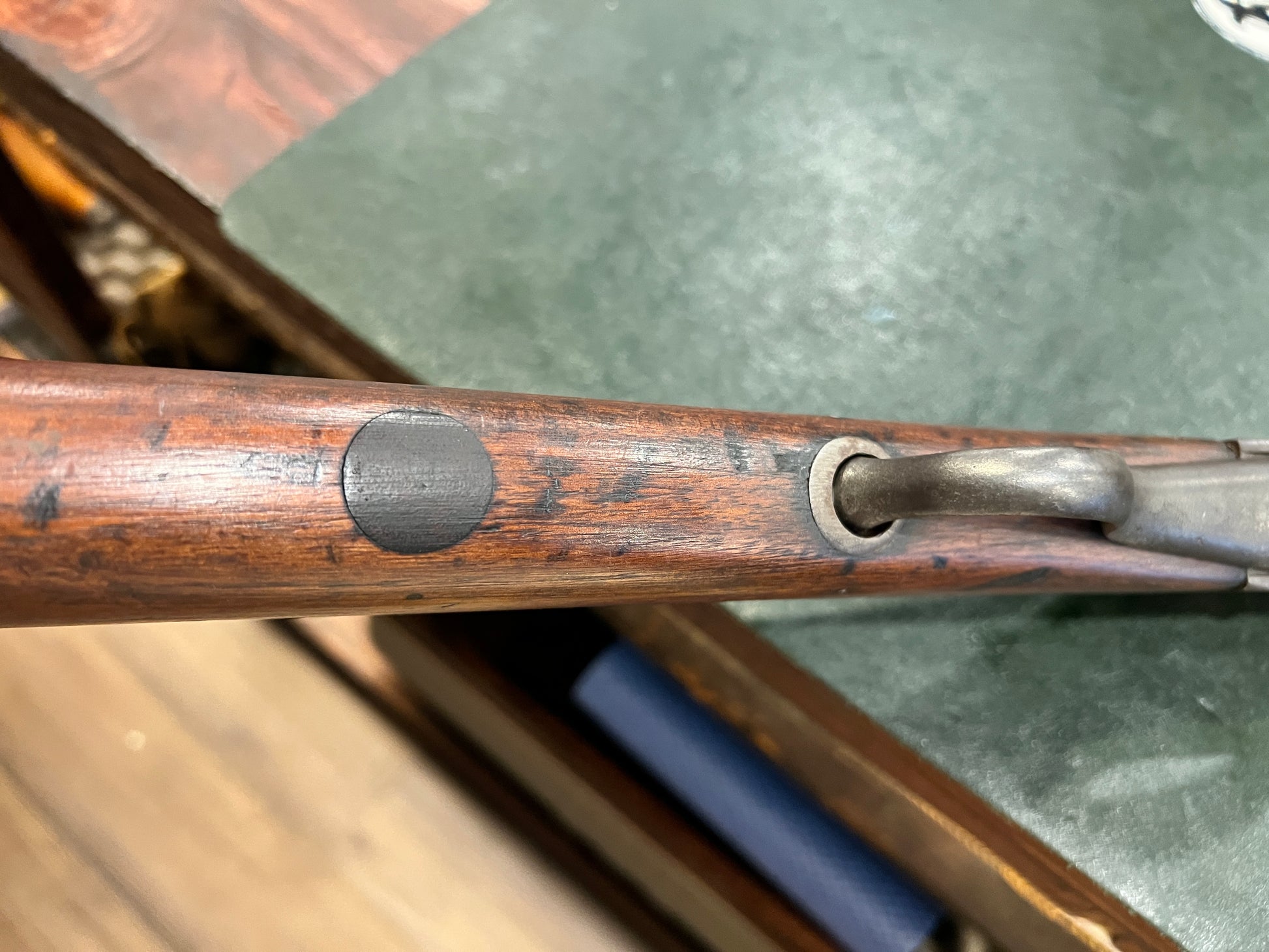 This rifle also bears a Nepalese Devanagari arsenal inventory marking located on the bottom of the trigger guard bow