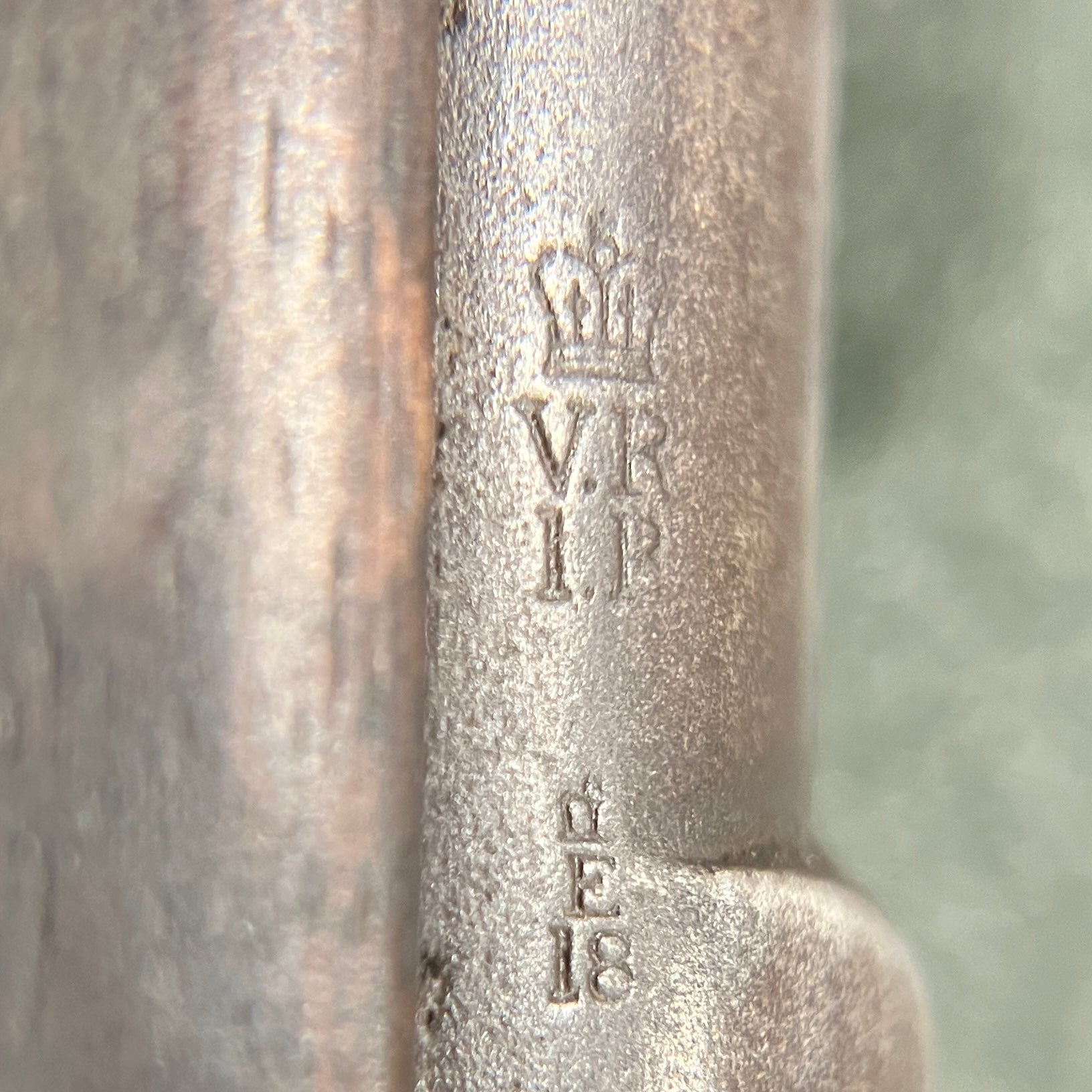 The marking VR stands for VICTORIA REGINA, referring to Queen Victoria. The barrel shows correct British black powder proof markings BP along with the BROAD ARROW British government property mark.