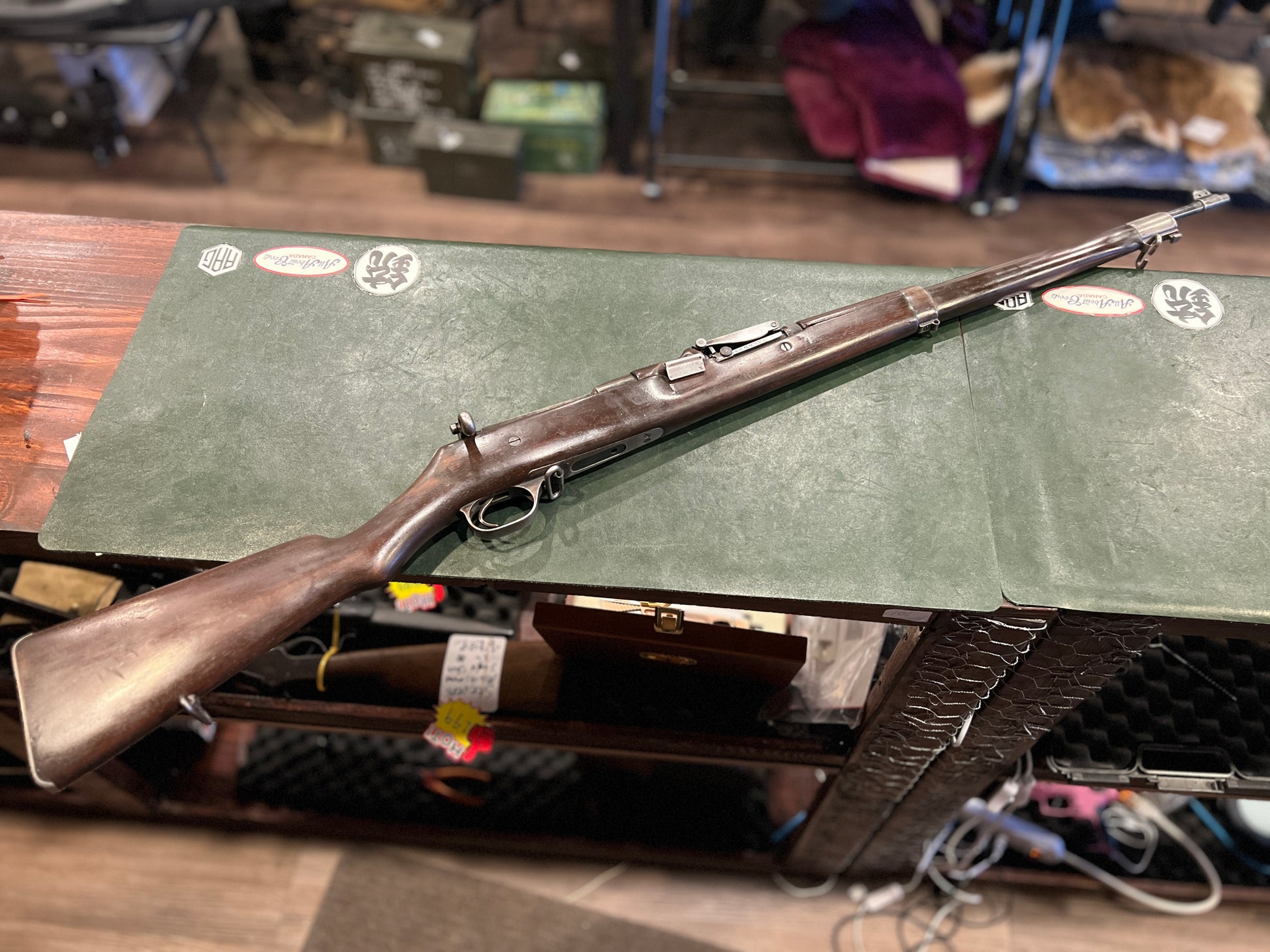 Metal surfaces show an attractive and even patina, with thinning original blue but no heavy pitting or corrosion. The stock appears unrefinished, showing natural handling marks without cracks or repairs. The bore remains bright with sharp rifling, and the straight-pull action cycles smoothly with solid lock-up.