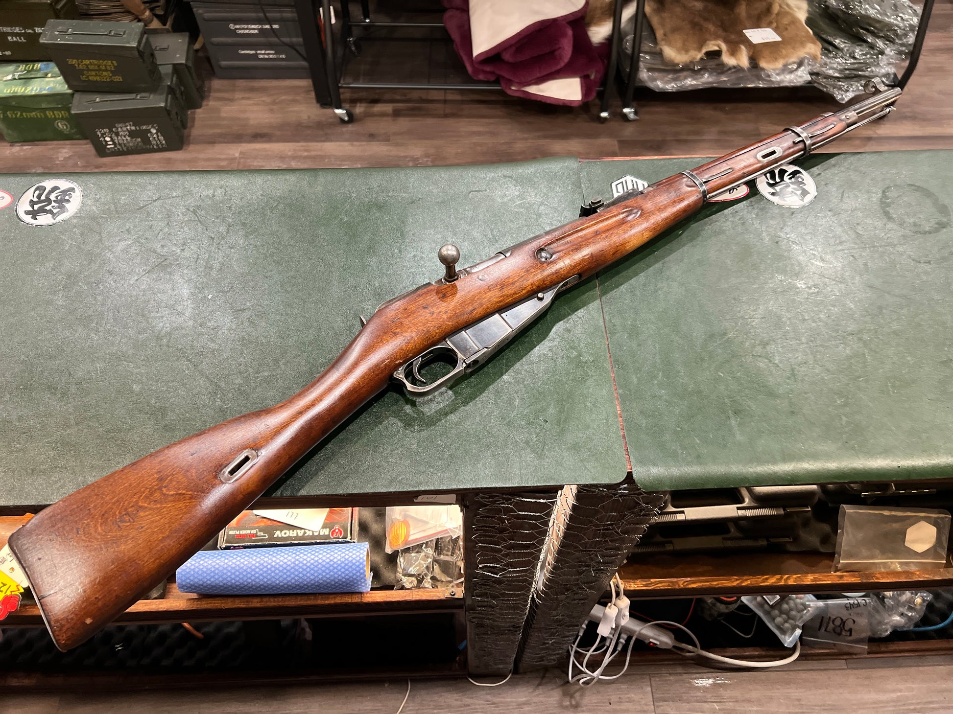 The rifle is dated 1941 and retains a high level of serial-number consistency. The receiver, barrel, bolt body, bolt handle, and bolt components are all matching. The only exception is the magazine floorplate, which is force-matched. This is a commonly encountered and historically correct feature on arsenal-serviced Mosin rifles and is fully consistent with Soviet refurbishment practices.