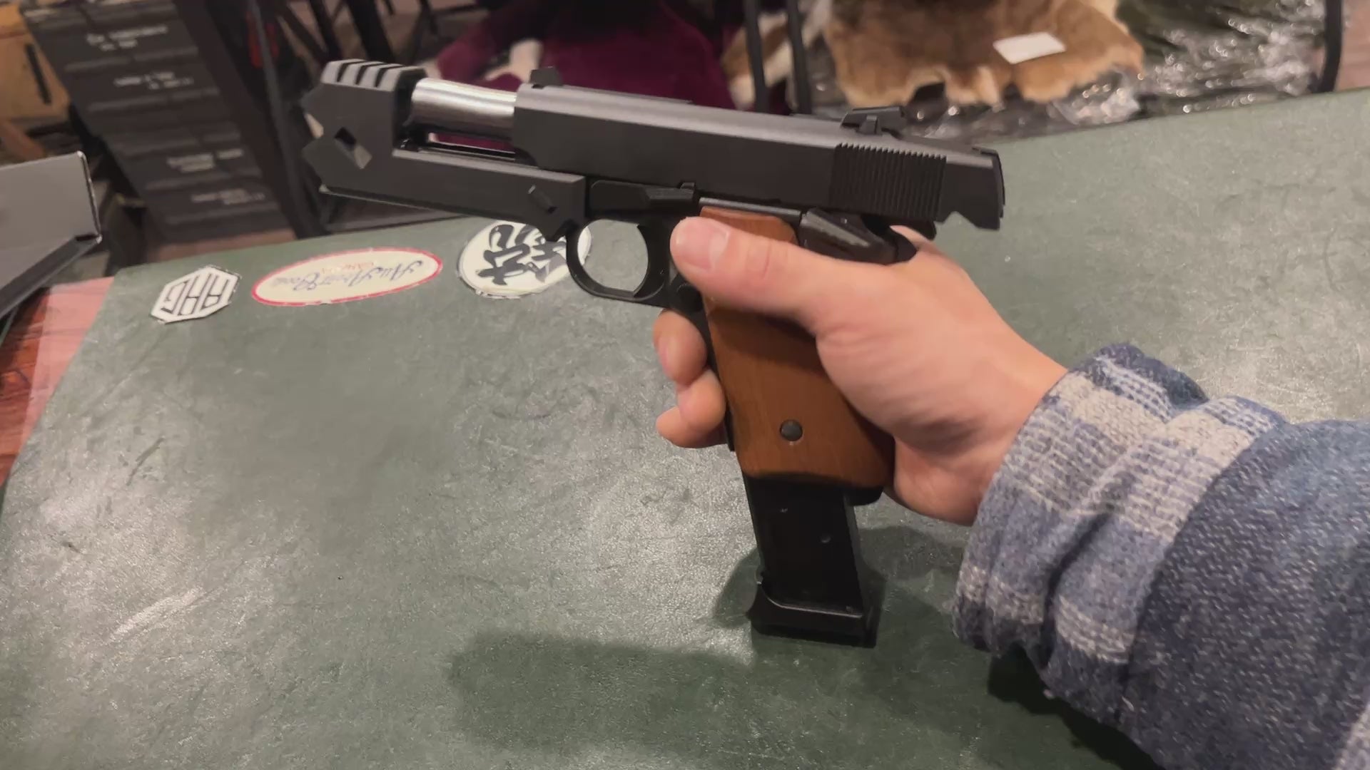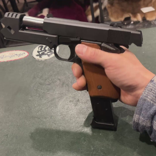 The pistol fires 6mm plastic BBs and features a smooth and consistent gas blowback action, offering realistic slide movement and crisp operation. The design includes a distinctive extended muzzle profile, custom slide detailing, and wood-style grips that closely match the on-screen appearance. Markings and overall proportions are specific to this limited release and are not found on standard production models.
