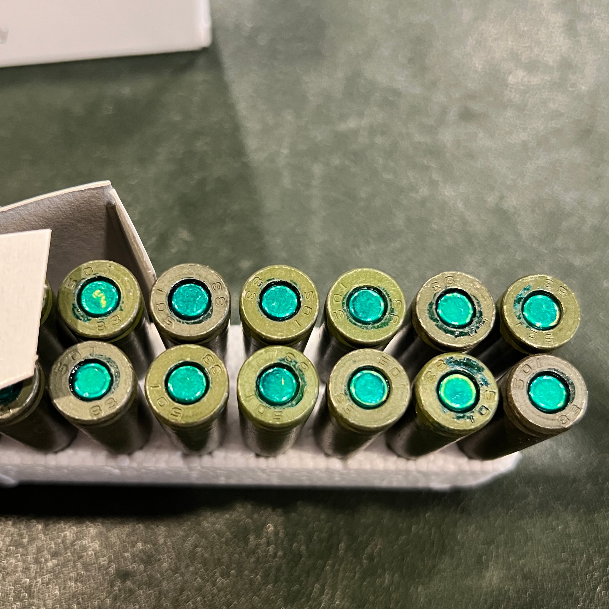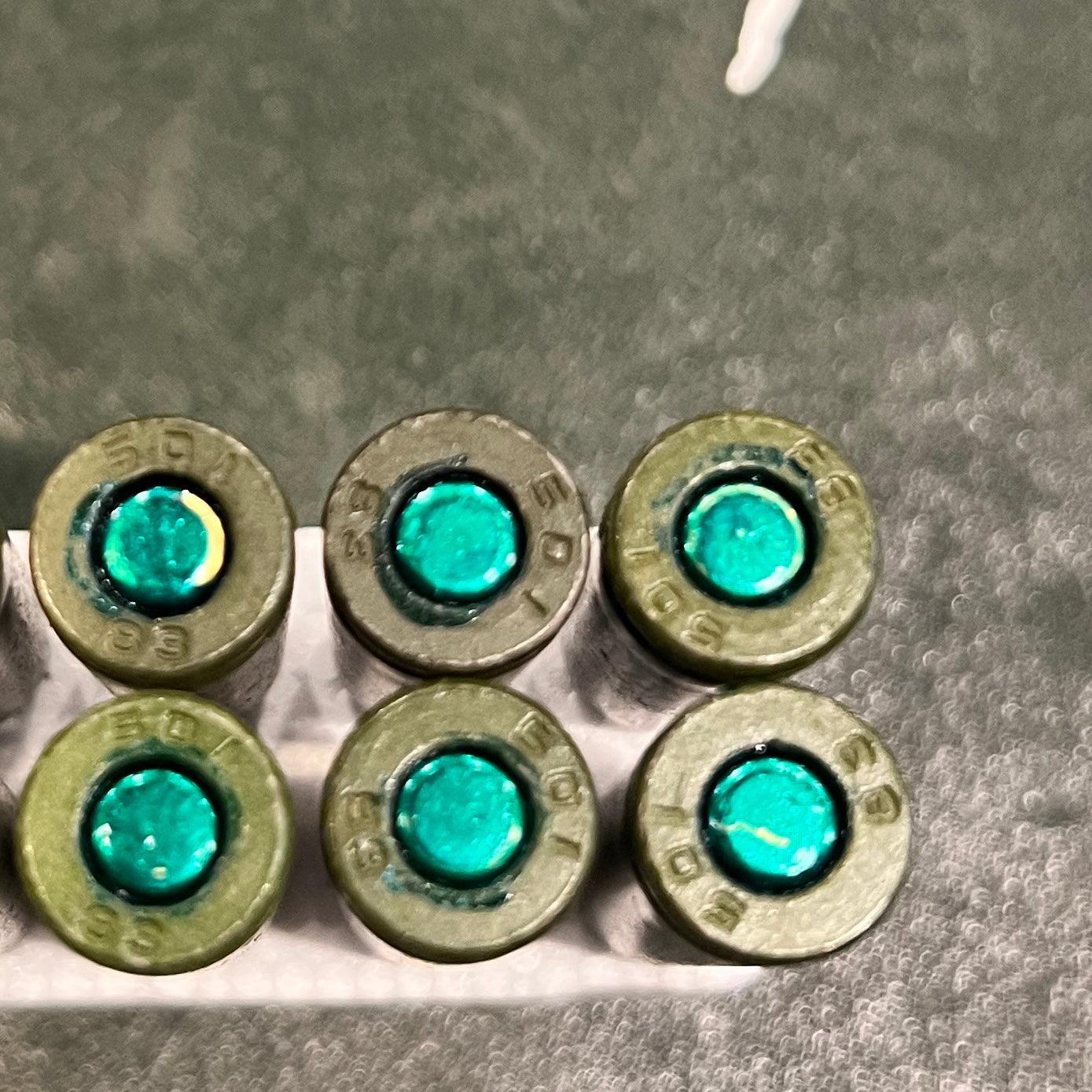 The headstamp “105 / 83” commonly follows a factory code + year pattern (the “83” possibly indicating 1983). Given the steel cases, green primer sealant, and Berdan primers, these rounds are consistent with 1980s military-style or surplus stock.