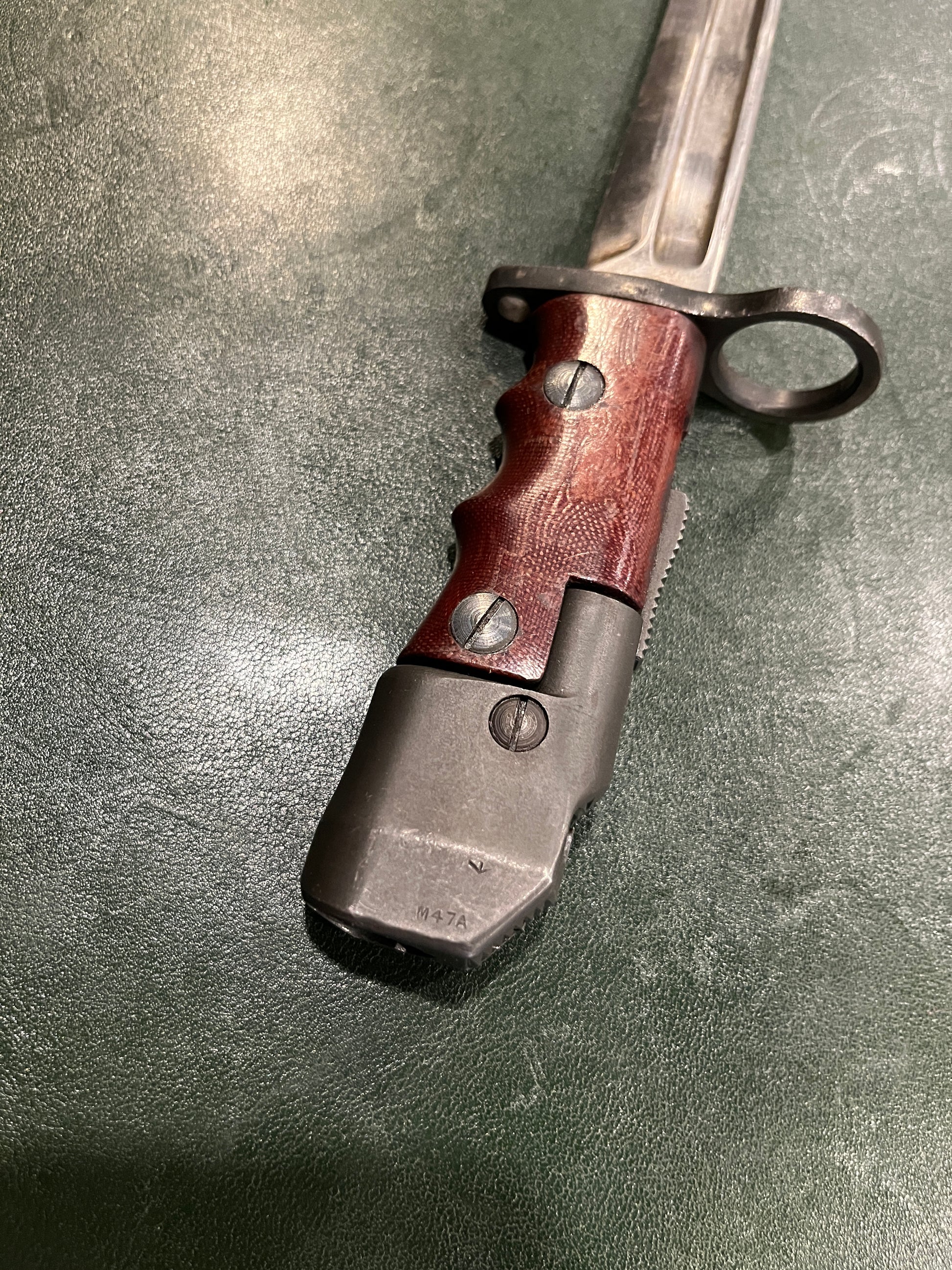This is an original British No.7 Mk I/L bayonet, manufactured by M47A (BSA Shirley) — one of the most desirable and collectible makers of the No.7 series. Produced in the late WWII to early post-war period (1945–1948), the No.7 Mk I/L is one of the rarest and most unique bayonets in the entire British small-arms system.