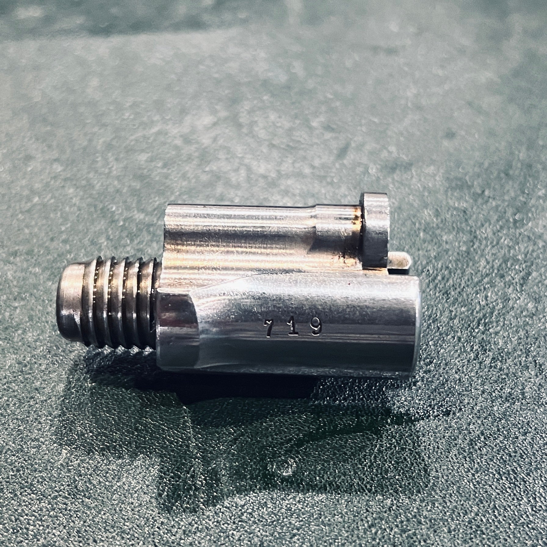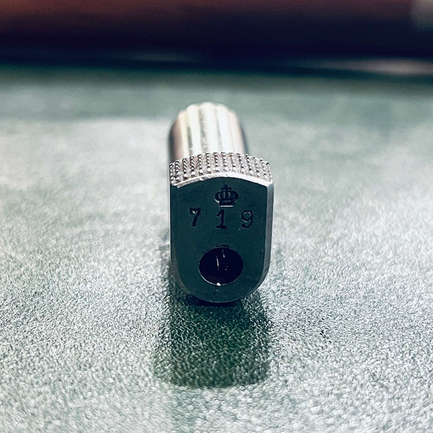 This rifle is in outstanding original condition and is 100% matching across all serialized parts — including the bolt body, bolt shroud, firing pin, extractor, bolt handle, receiver, magazine floor plate, trigger guard, stock metal fittings, sight base, and even the cleaning rod. Each component bears the Swedish crown inspection mark and the matching number “719.”