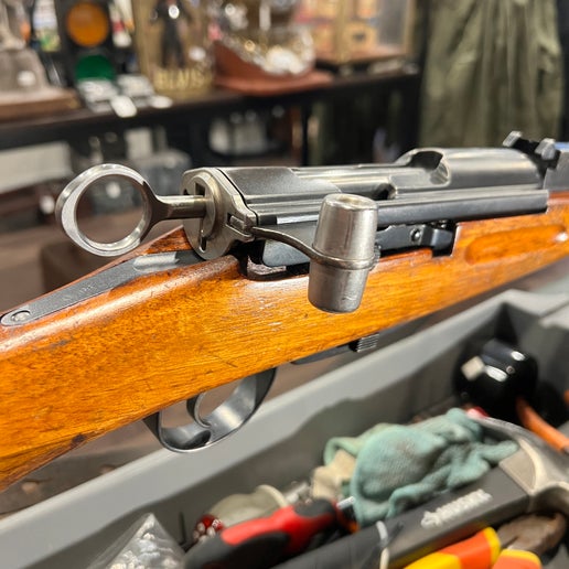 这是一支瑞士原装K31(Karabiner Modell 1931)步枪,发射7.5x55毫米瑞士GP11口径子弹,采用著名的直拉式枪机和瑞士军工工艺。这支步枪由伯尔尼武器制造厂制造,品相极佳,是收藏家和射击爱好者的绝佳选择。