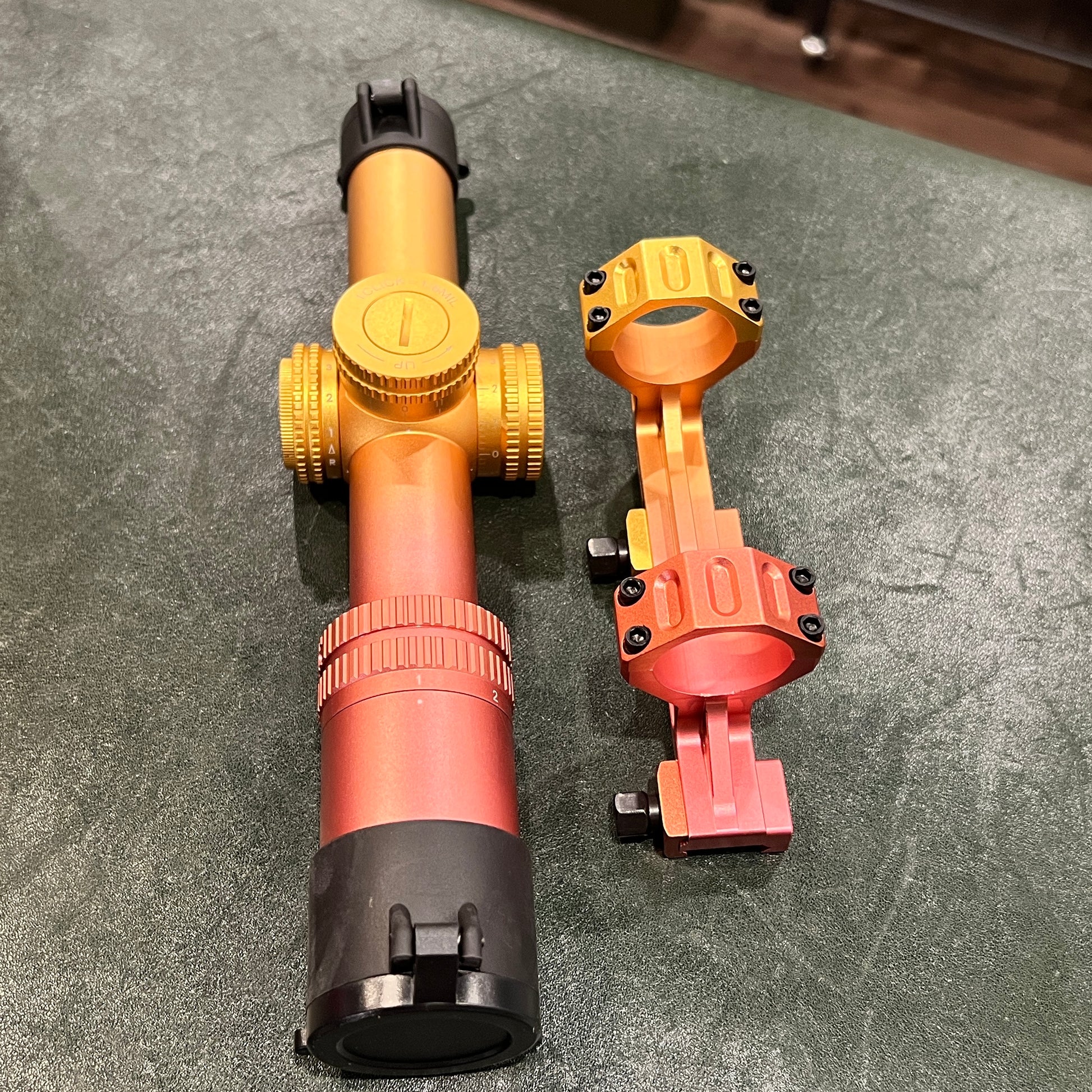 This brand-new T-Eagle AR 1–6×24IR LPVO combines tactical functionality with a unique pink-to-gold gradient anodized finish. Designed for both precision and visual appeal, it comes complete with a color-matched one-piece Picatinny mount, offering solid performance and standout style.